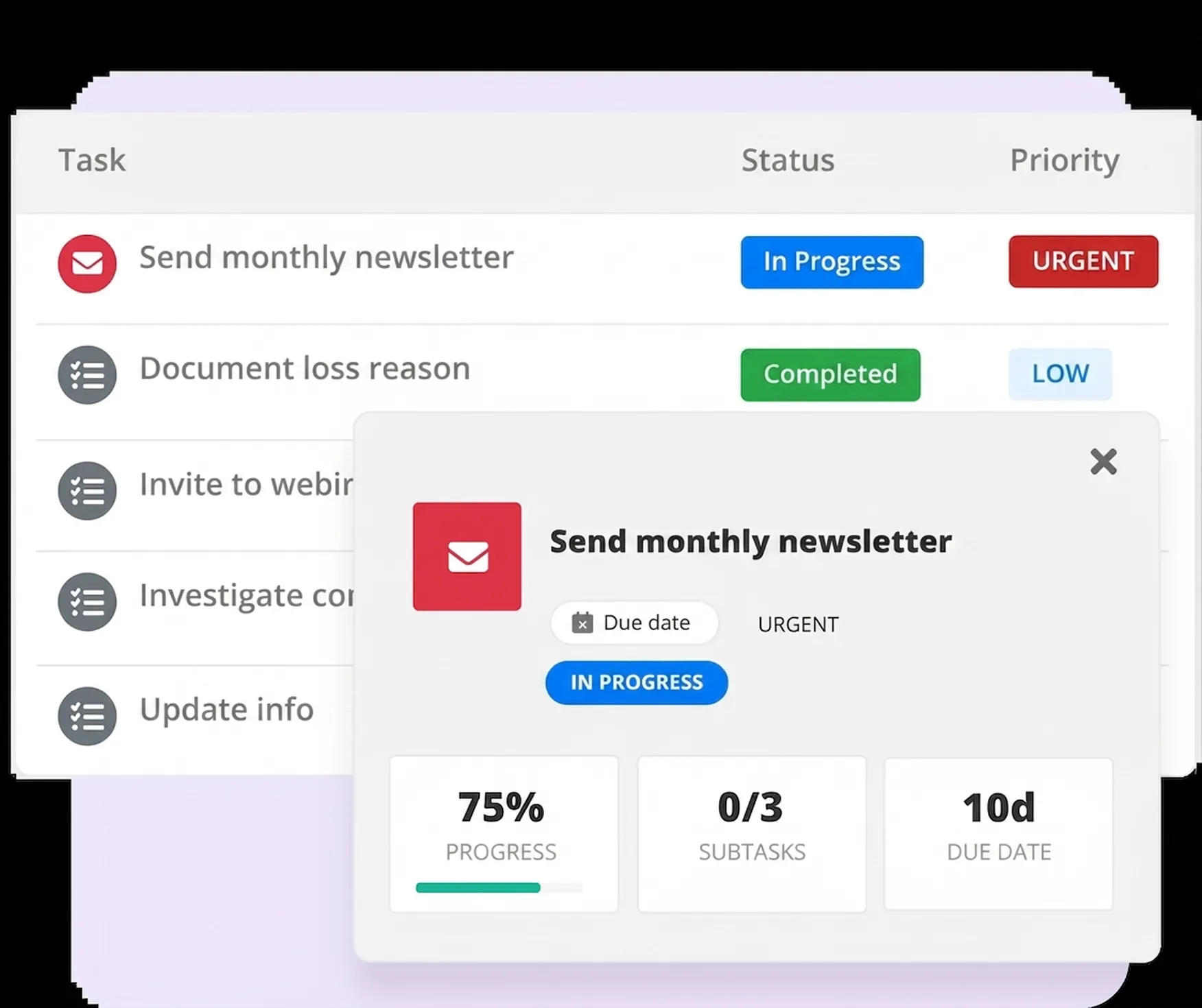 You end a chat promising to call tomorrow. One click. The task is created with the customer's context attached.