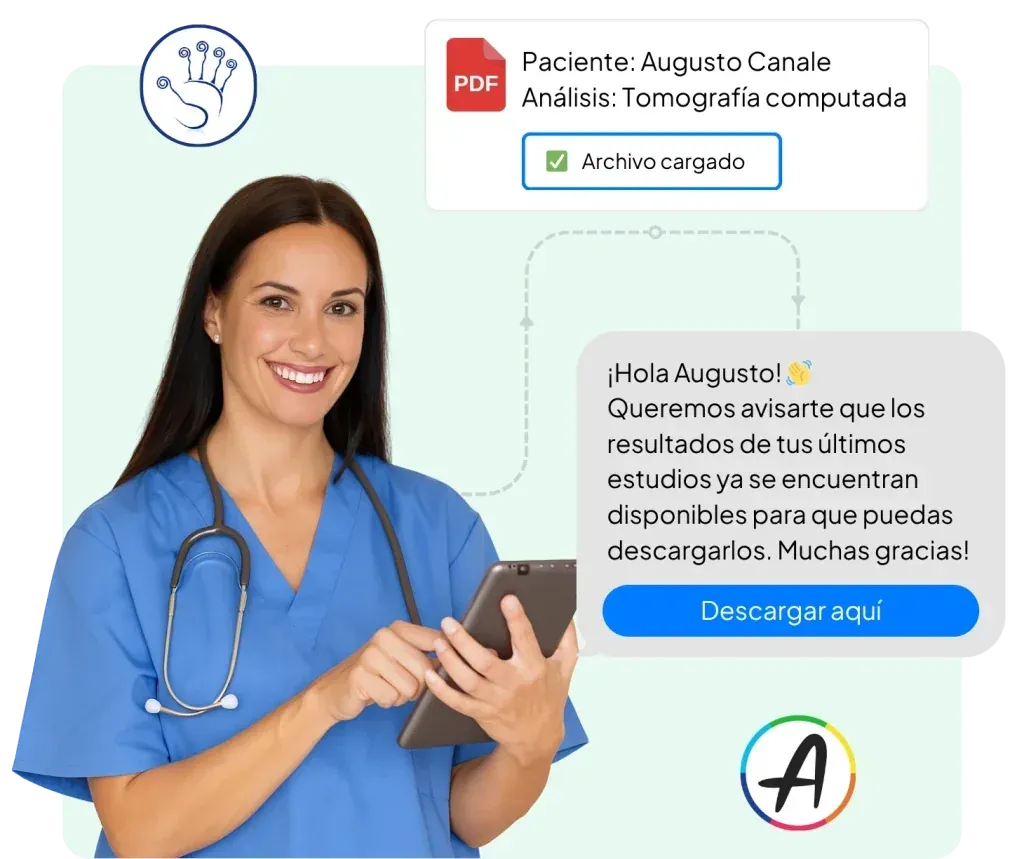 Ofrece un servicio más ágil y seguro para tus pacientes brindándoles el acceso a los resultados sus estudios de forma conversacional 24/7