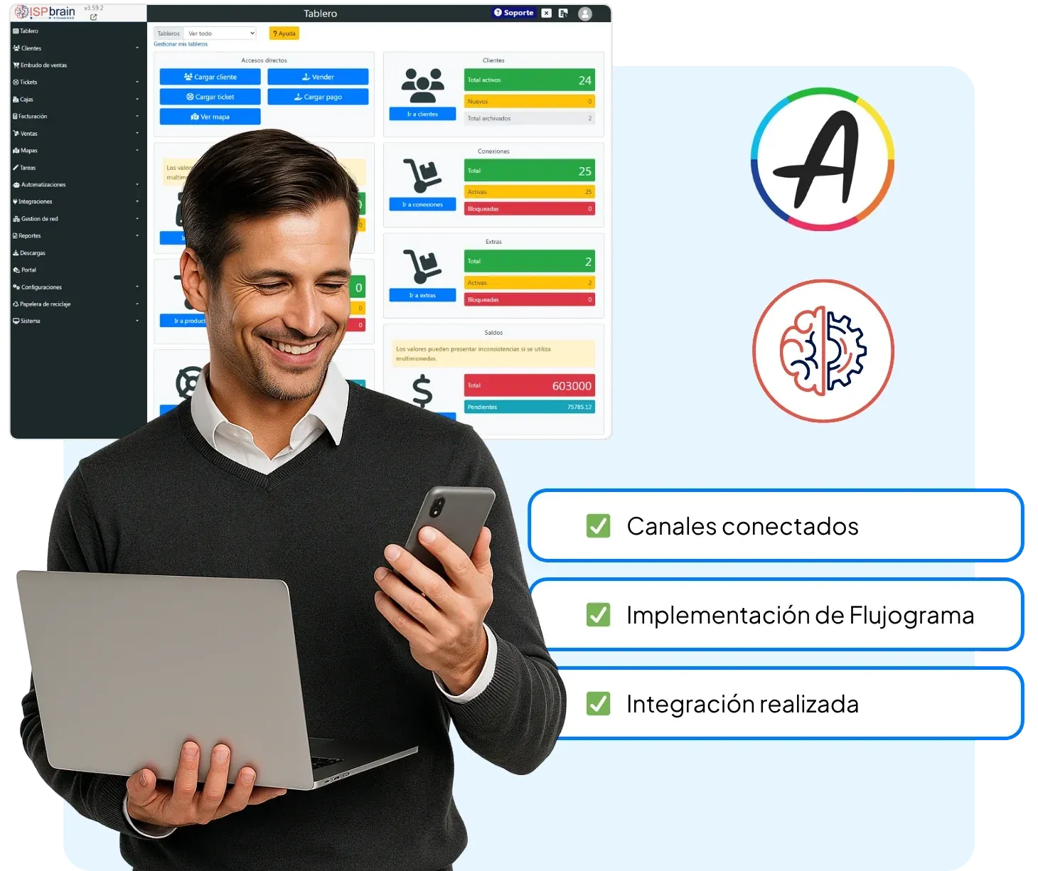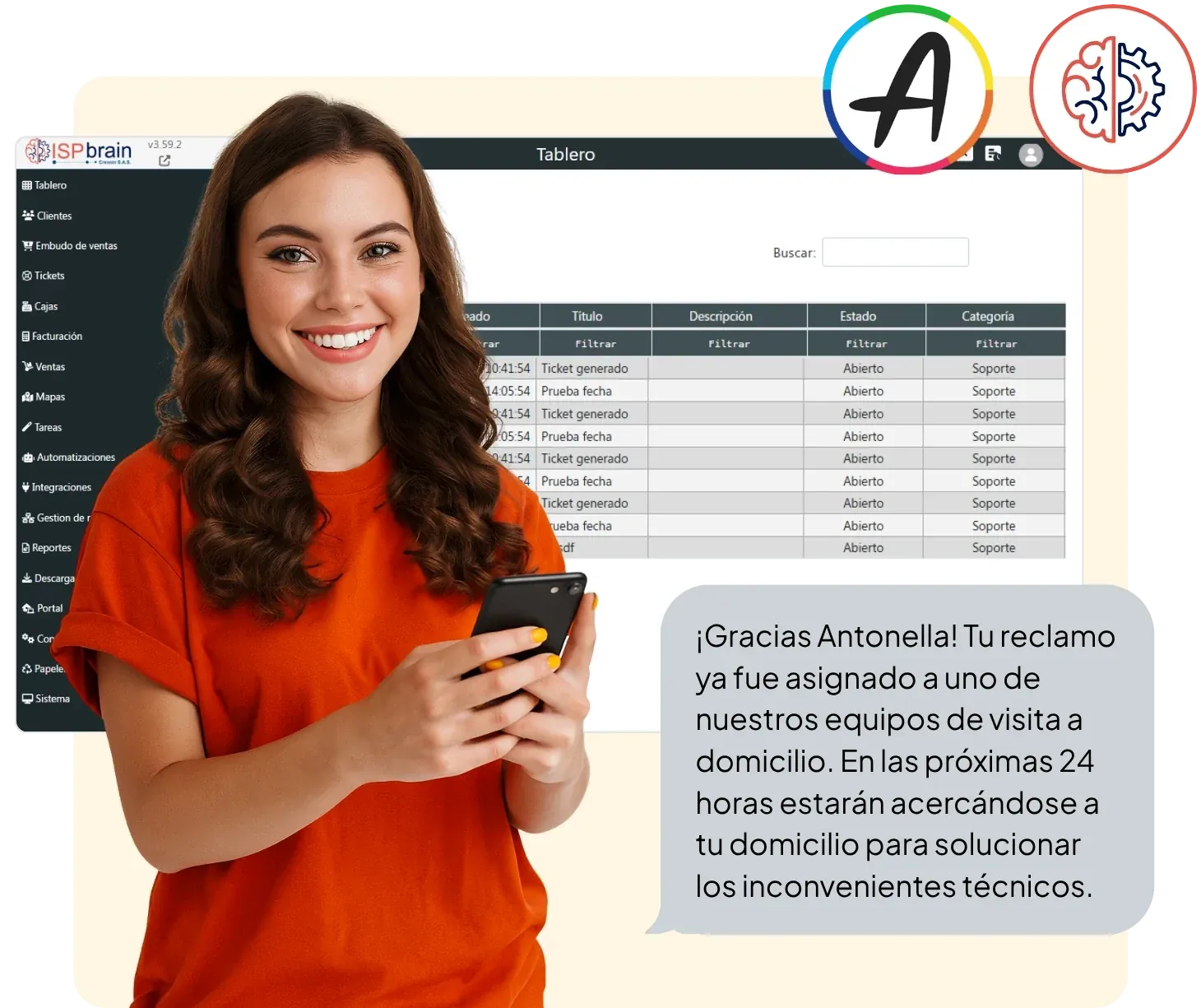 Integra AsisteClick con ISP Brain y empieza a transformar tu atención al cliente en solo una semana.
