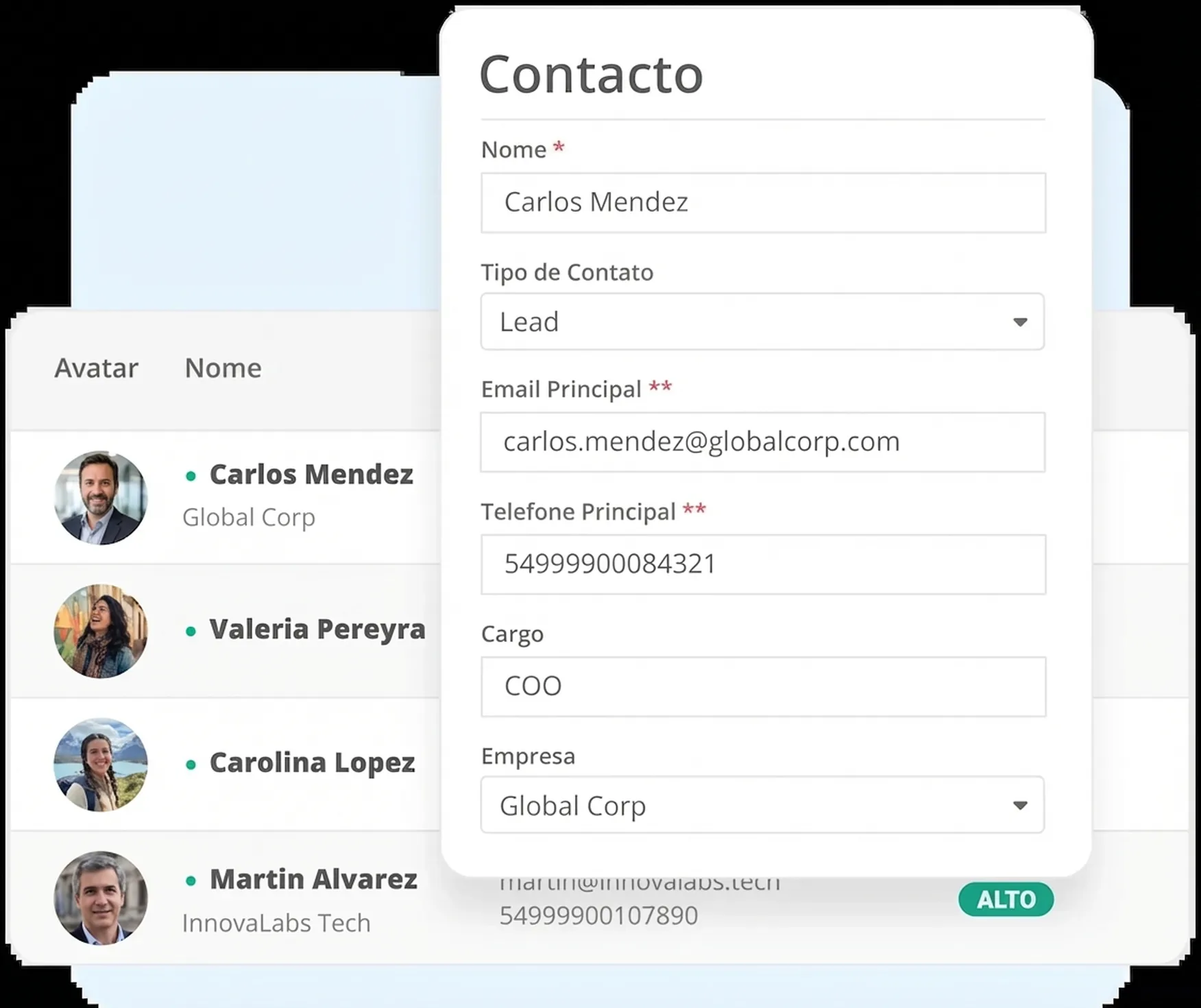 Pode usar ambos. O AsisteCRM não substitui seu CRM corporativo, o complementa com o contexto conversacional que esse CRM não tem. Ou pode substituí-lo se seu CRM atual acumula poeira. Você decide.